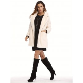 Womens Elegant Plaid Faux Fur Long Sleeve Teddy Coat - Soft Polyester Knit Fabric, Button Front, No Elasticity, Fall/Winter Outerwear for Adult - Chic and Cozy Open Front Design