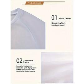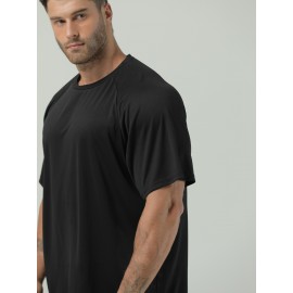 Plus Size Mens Ultra-Breathable, Quick-Drying Crew Neck T-Shirt for Sports - Moisture-Wicking, Medium Stretch, Regular Fit, Polyester Fabric - Perfect for Spring and Fall Seasons