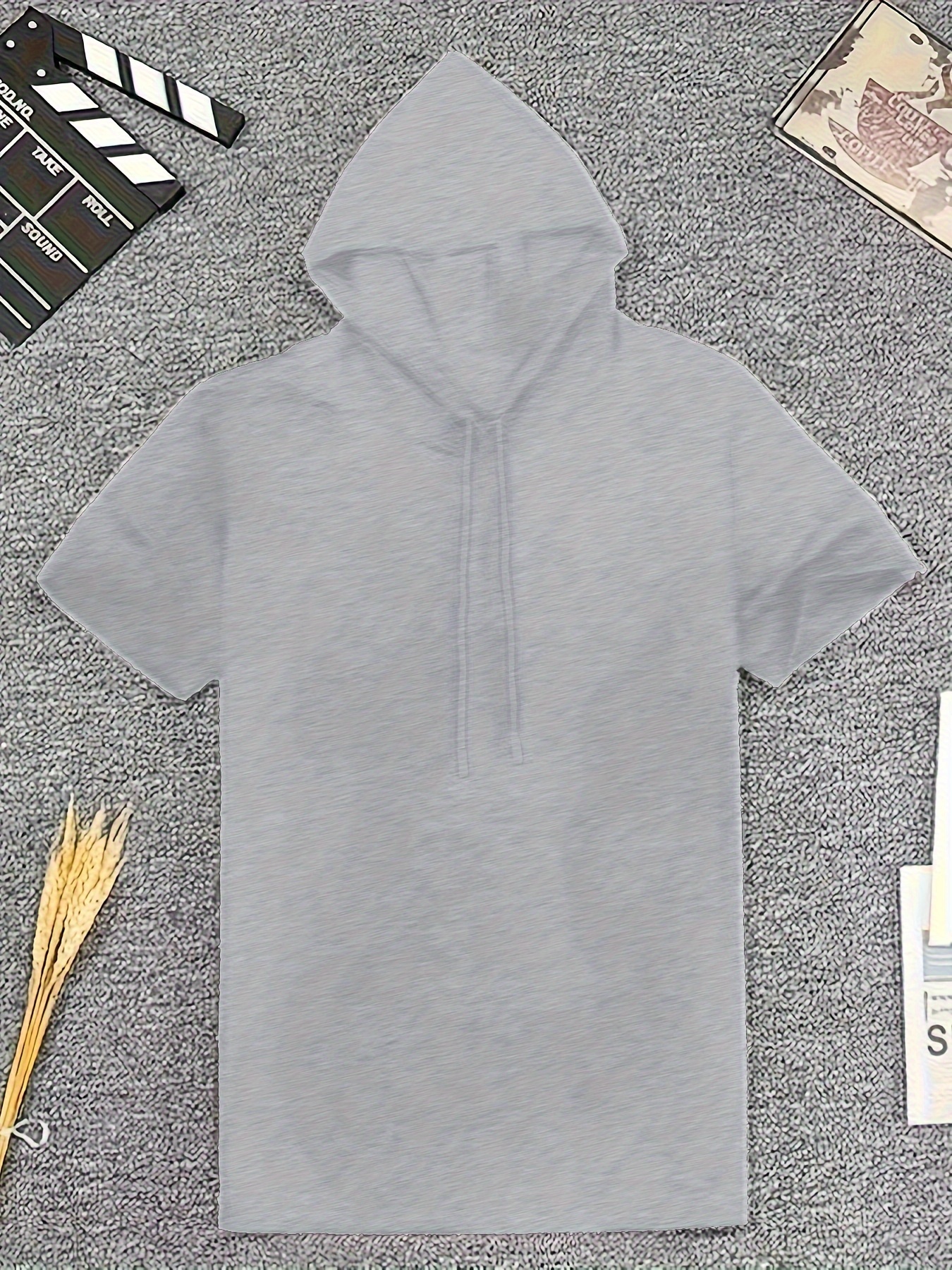 Plus Size Mens Cotton Blend Hoodie T-shirt - Trendy Solid Colors for Spring & Summer - Comfortable Casual Wear