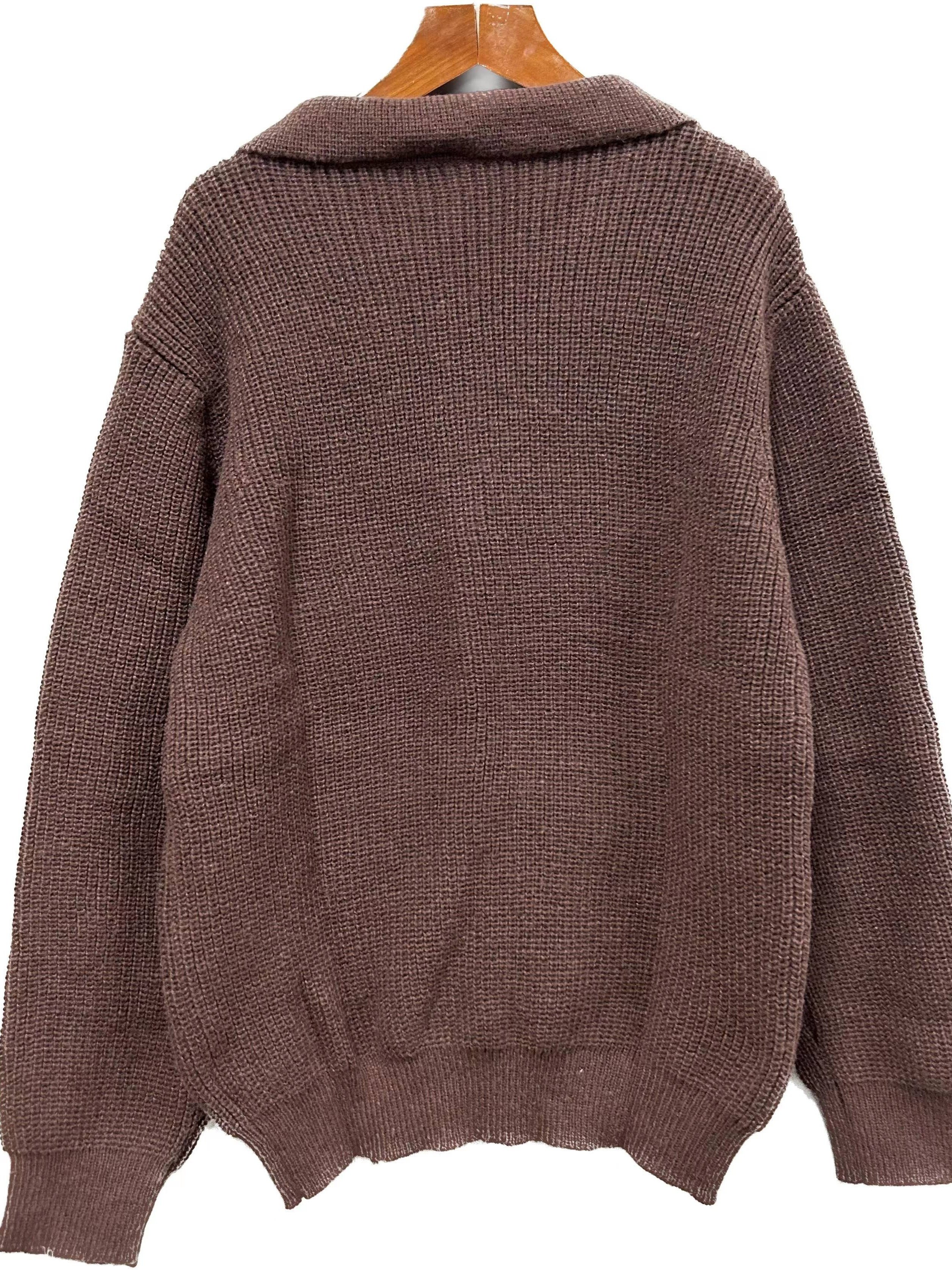 Men's Stylish Solid Knitted Shirt, Casual Slightly Stretch Breathable Lapel Zip Up Long Sleeve Shirt Top For City Walk Street Hanging K-pop